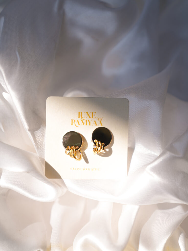 Elevate your everyday elegance with these beautifully crafted anti-tarnish gold loop stud earrings from Luxe by Ramyaa. Designed with a modern circular base and accented with multiple gold mini-hoops, this pair blends minimal style with a premium luxe finish—perfect for both daily wear and special occasions.