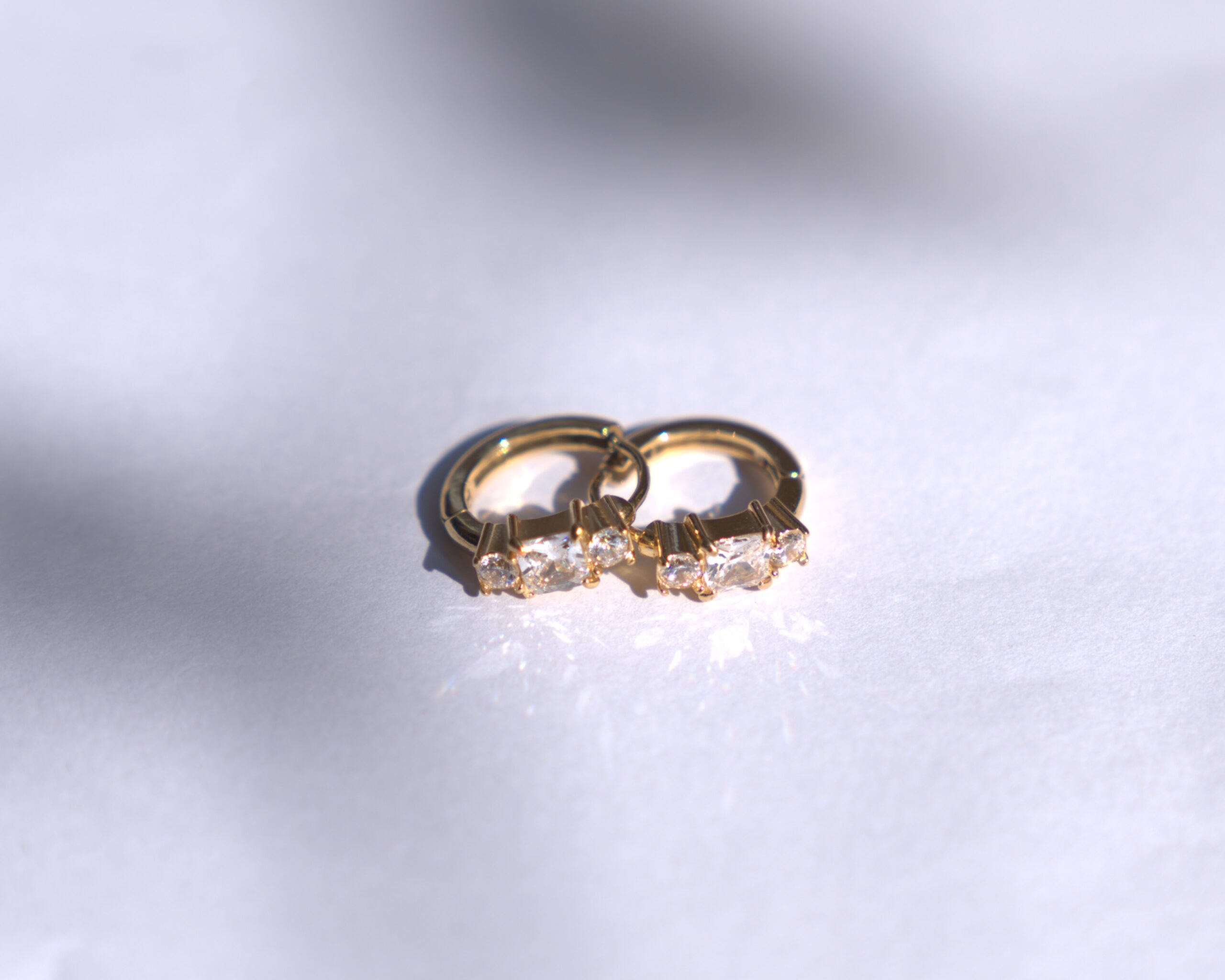 Elevate your everyday stack with the Baguette Huggie Hoops. These essential hoops feature a seamless click-to-close design, pavé-set with precision-cut baguette crystals that catch the light from every angle. Designed to hug the lobe perfectly, they offer a sophisticated, high-jewelry look with a contemporary edge.