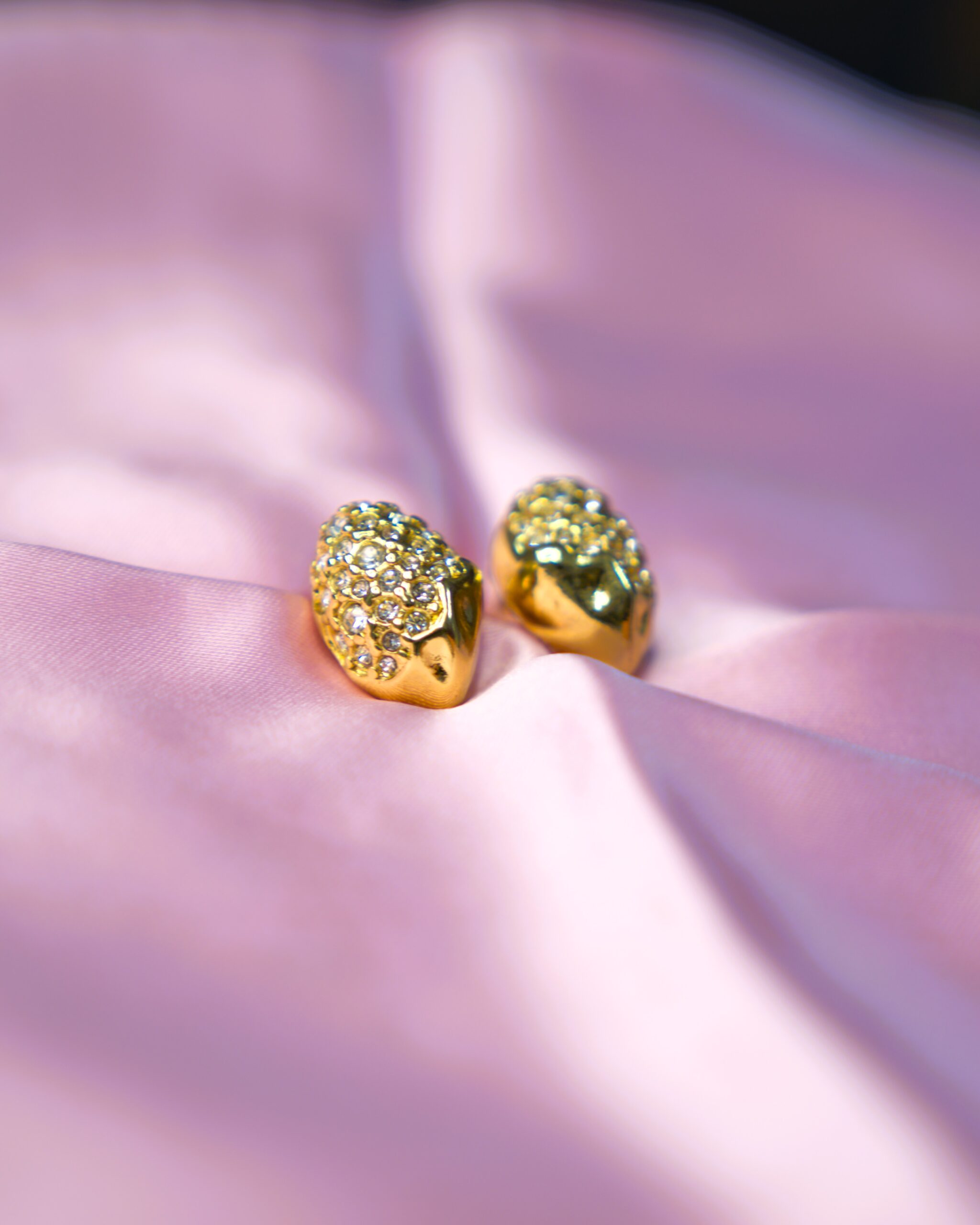 The Gilded Oro Studs are a tribute to organic luxury. Moving away from traditional geometric shapes, these earrings feature a unique, molten “nugget” silhouette that mimics the raw beauty of natural gold. One face is delicately frosted with a pavé of shimmering crystals, creating a sophisticated play of light against the high-polish gold.