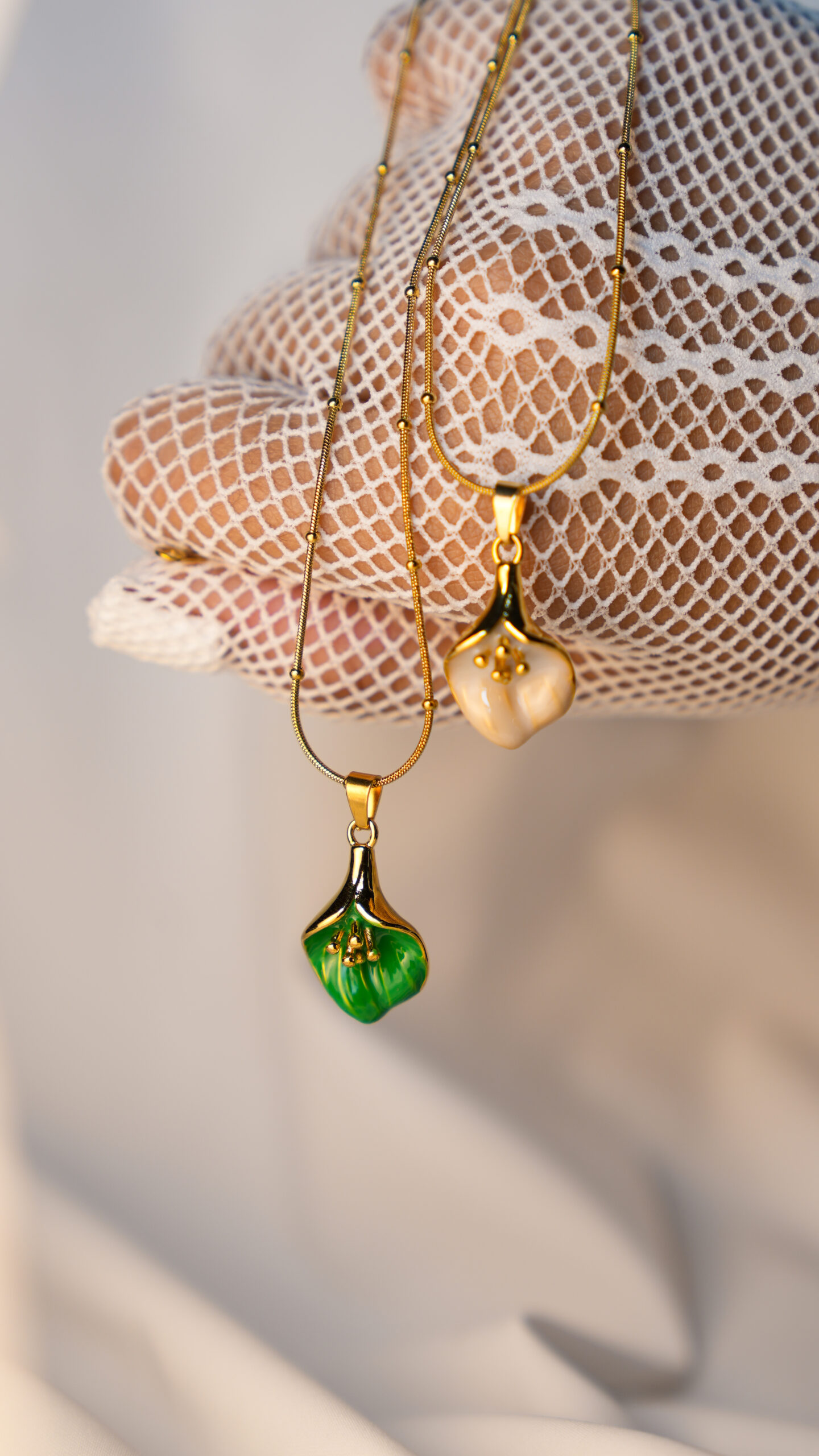 - Lasting Color & Shine (Anti-Tarnish): The pendants and chains are finished with a premium anti-tarnish coating, ensuring the rich gold tone and vibrant enamel colors (Green and White/Cream) remain bright and fade-proof for years.
