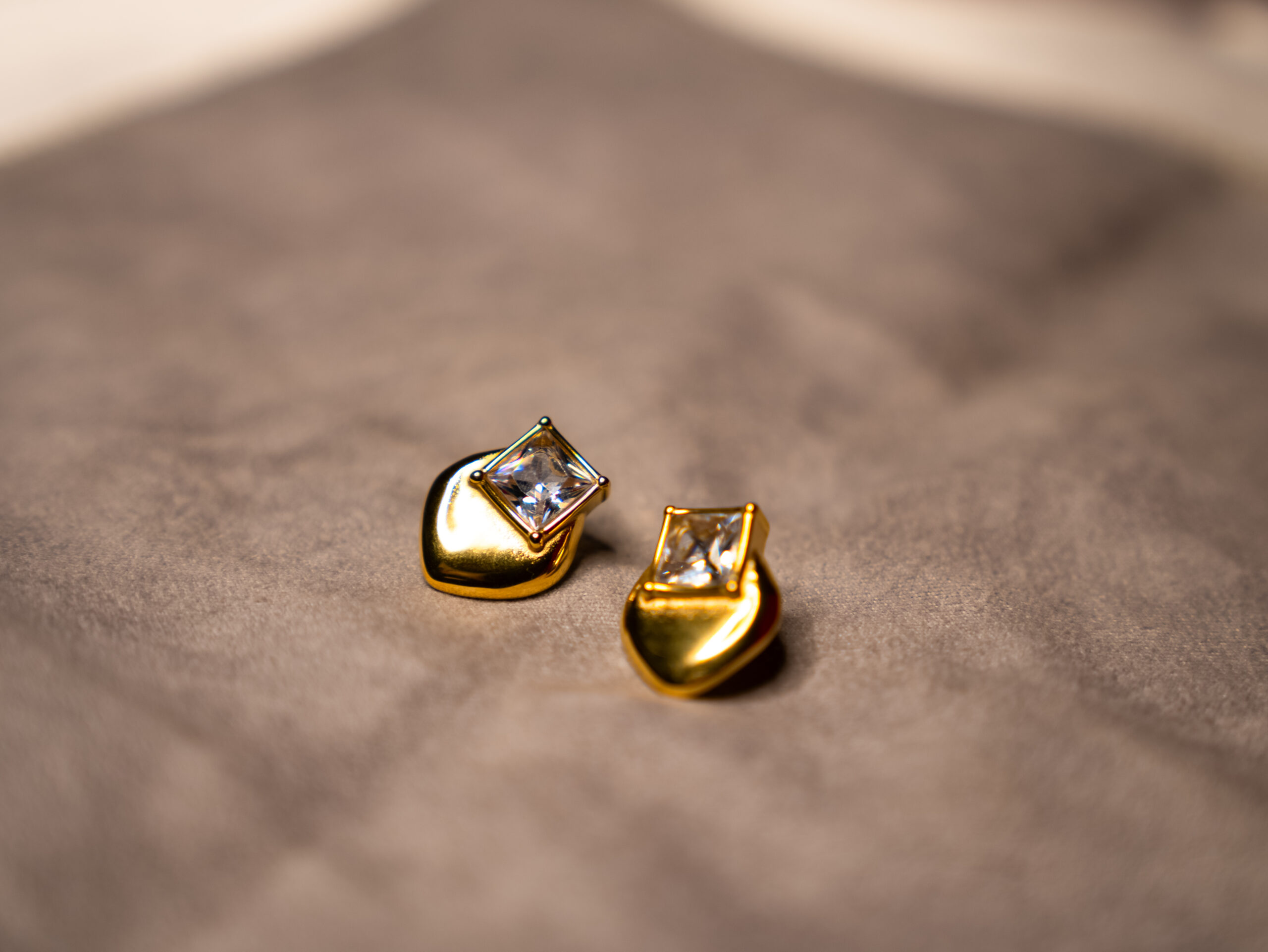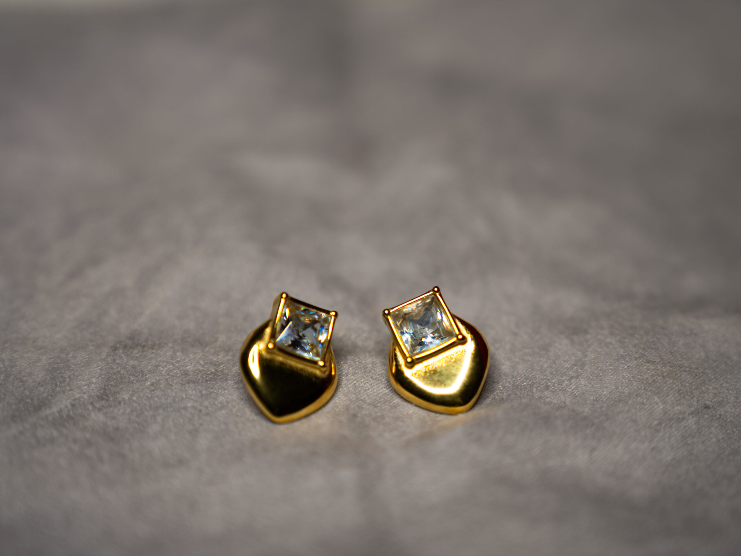 Unique Design: The striking combination of the square crystal and the smooth, shimmering heart-shaped base creates a distinctive, eye-catching look that stands out from standard stud earrings.