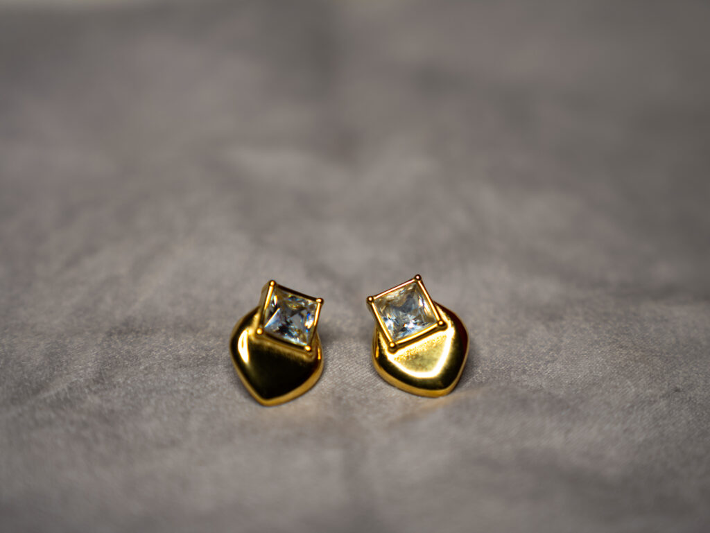 Elevate your everyday style with our exquisite Anti-Tarnish Gold-Plated Stud Earrings. Designed for the modern woman, these stunning earrings perfectly blend a classic silhouette with durable, long-lasting quality. Featuring a brilliant, square-cut cubic zirconia (CZ) stone elegantly set atop a unique, highly polished gold-plated heart-shaped base, they offer just the right amount of sparkle and sophistication