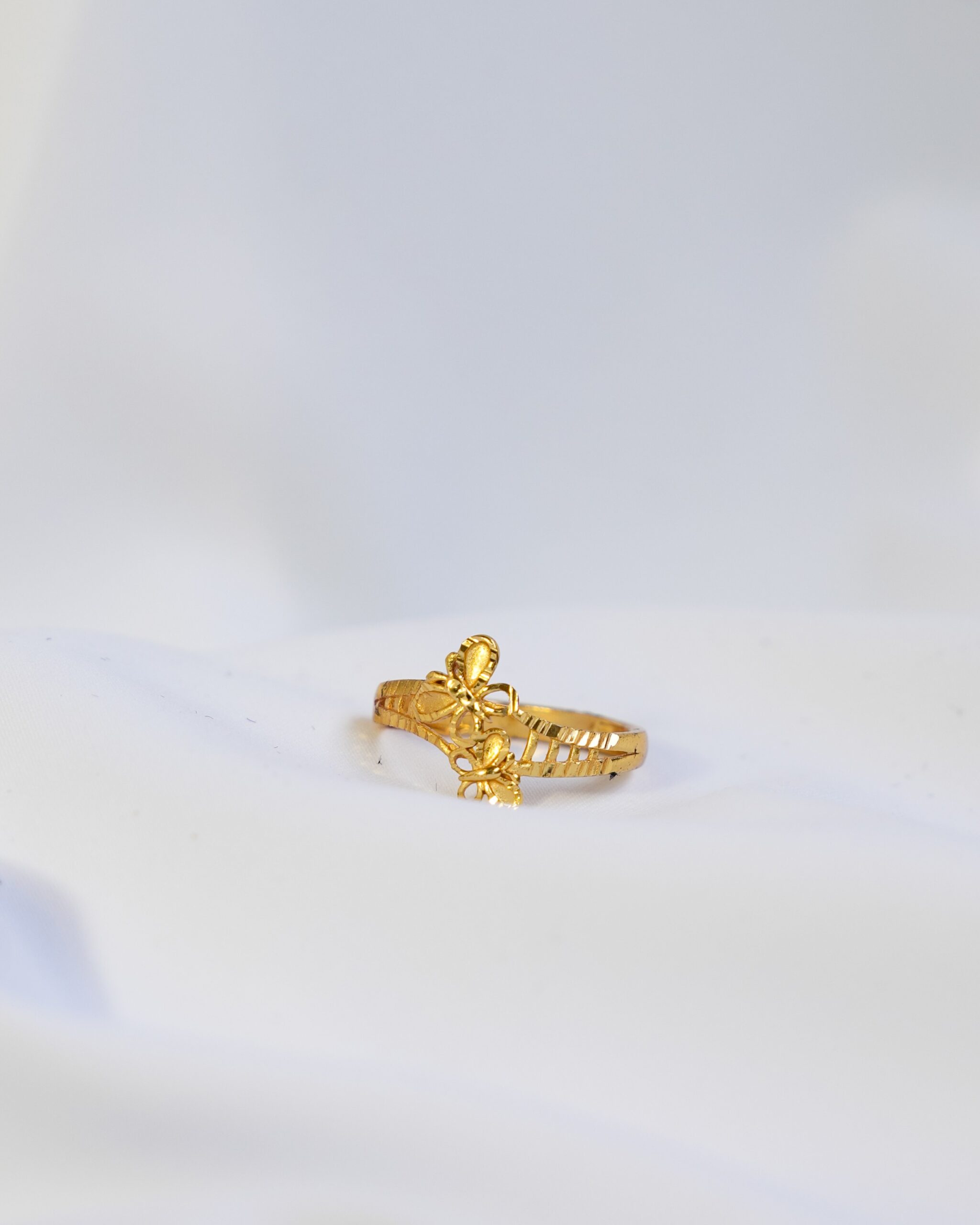 The Flutter Gold Ring is a celebration of craftsmanship and whimsical design. Featuring a unique twin-butterfly motif set atop a sophisticated filigree “ladder” band, this ring offers a vintage-inspired aesthetic for the modern jewelry lover.