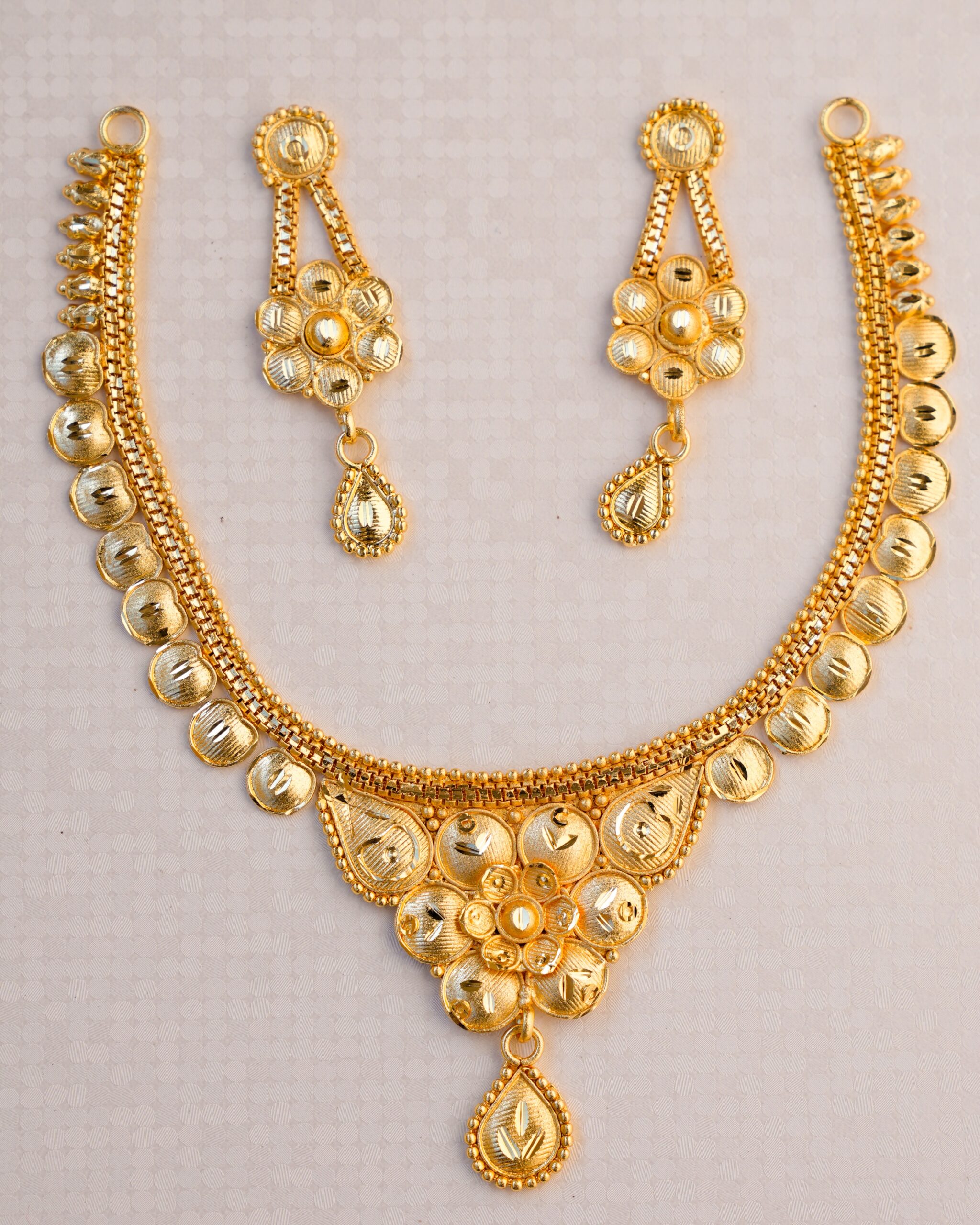 Grace your special occasions with our Elegant Floral Gold-Plated Necklace Set.