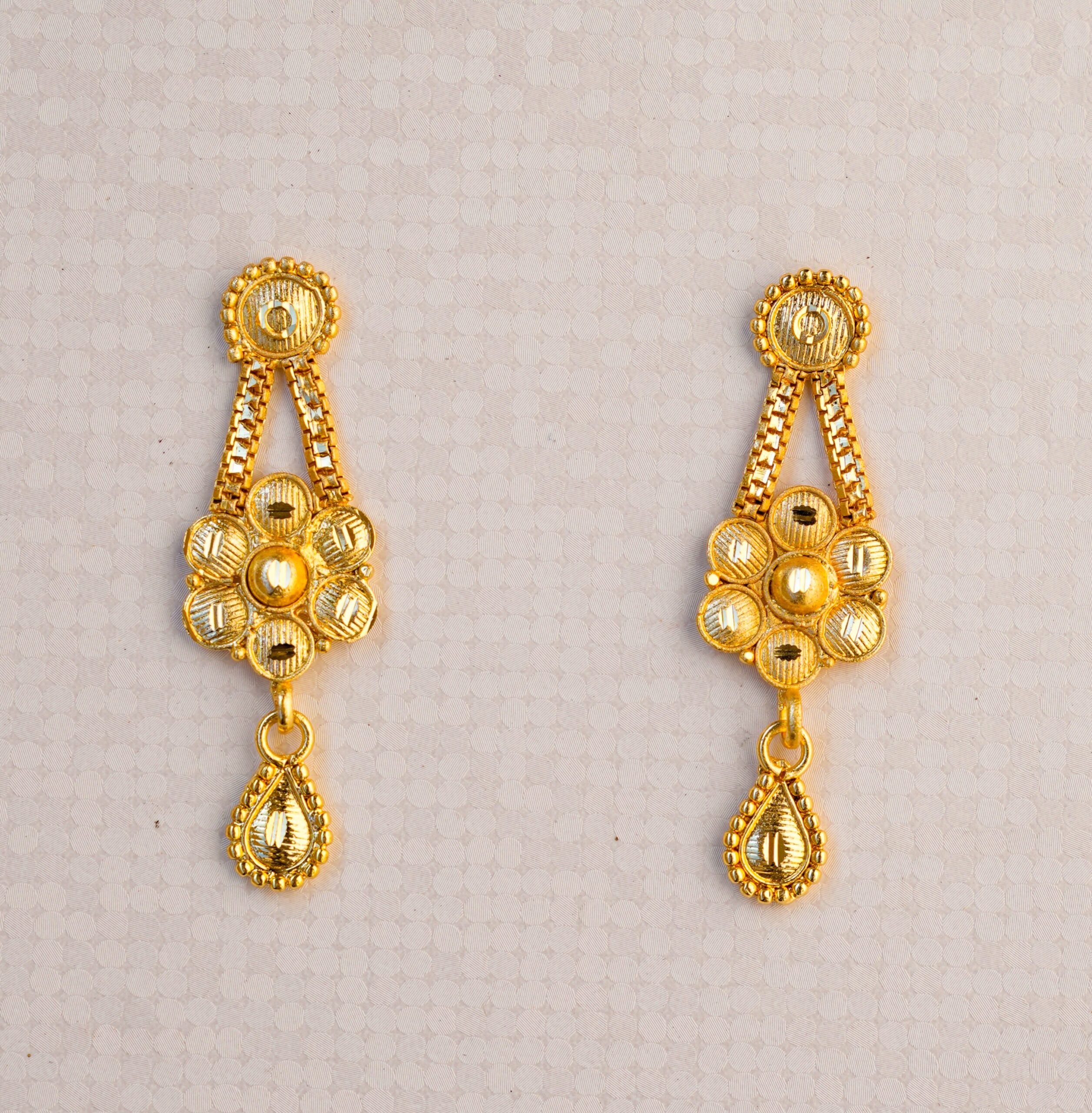 This 2-piece collection showcases the perfect blend of traditional styling with a contemporary shine. Crafted with a premium Bright Gold Plating, the set radiates a rich, newly polished lustre. The stunning necklace features an intricate floral centerpiece and is paired with delicate matching danglers, offering an immediate, polished look.