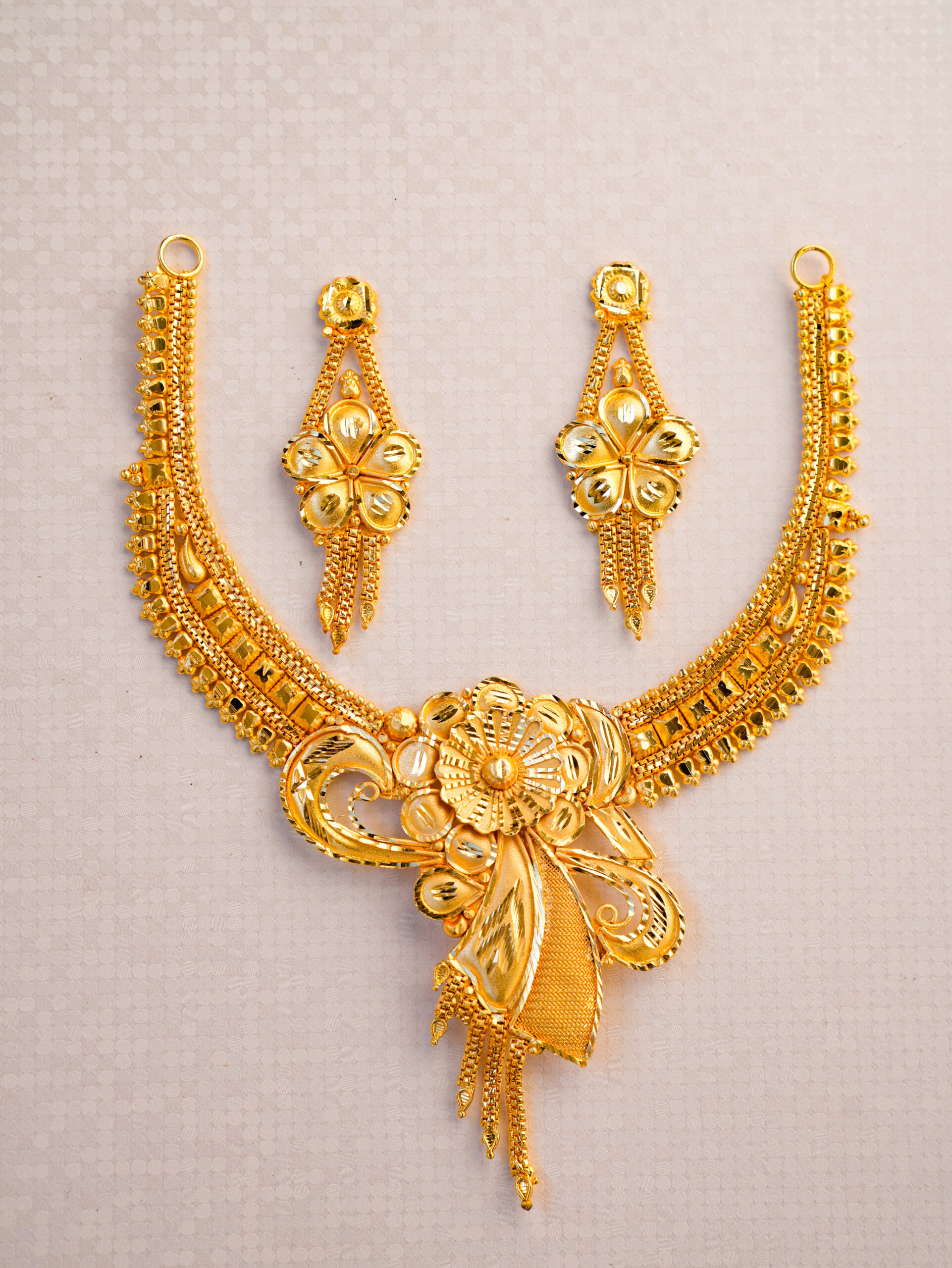 • Matching Earrings: Coordinated dangle earrings that echo the necklace’s floral and filigree work.